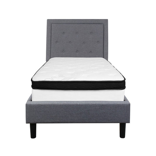 Roxbury Twin Size Tufted Upholstered Platform Bed in Light Gray Fabric with Memory Foam Mattress