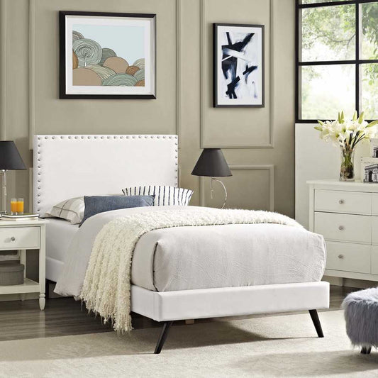 Macie Twin Vinyl Platform Bed with Round Splayed Legs
