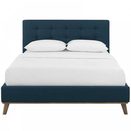 McKenzie Queen Biscuit Tufted Upholstered Fabric Platform Bed, Blue