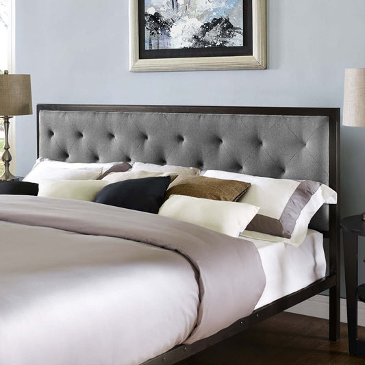 McKenzie Queen Biscuit Tufted Upholstered Fabric Platform Bed, Gray