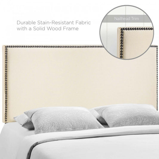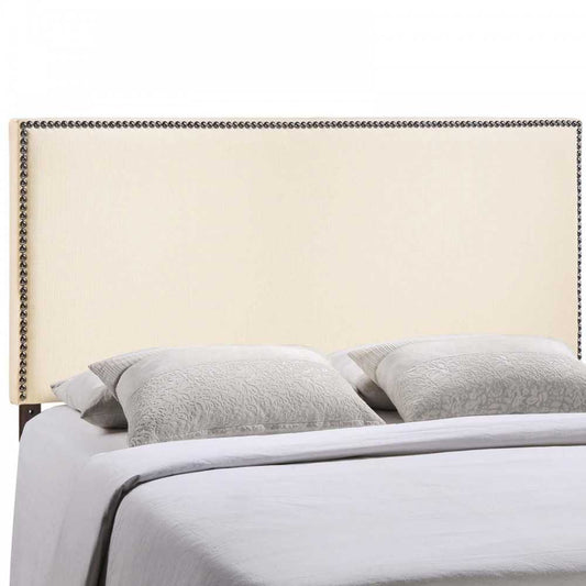 Region Nailhead Queen Upholstered Headboard, Ivory