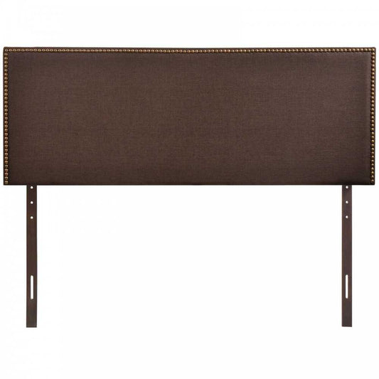 Region Nailhead Queen Upholstered Headboard, Dark Brown
