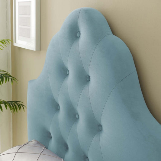 Sovereign Queen Diamond Tufted Performance Velvet Headboard, Light Blue