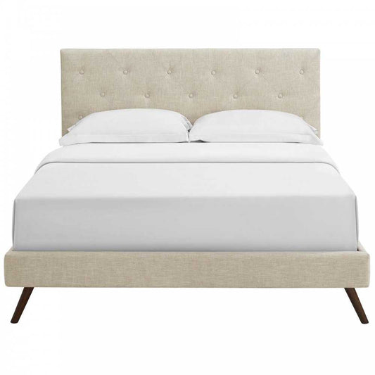 Tarah Queen Fabric Platform Bed with Round Splayed Legs, Beige