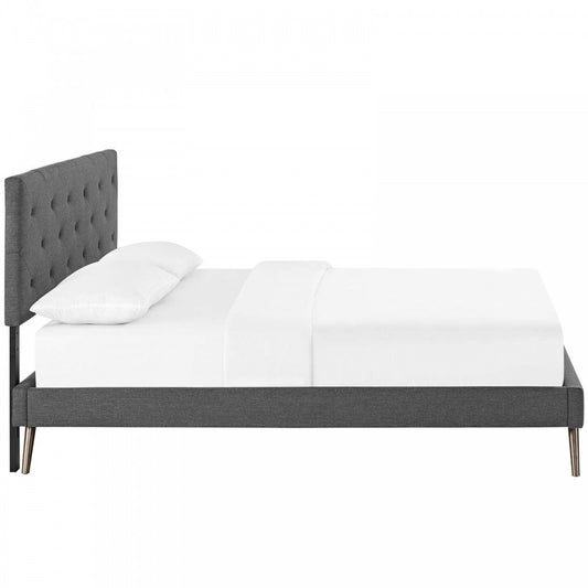 Tarah Queen Fabric Platform Bed with Squared Tapered Legs, Gray