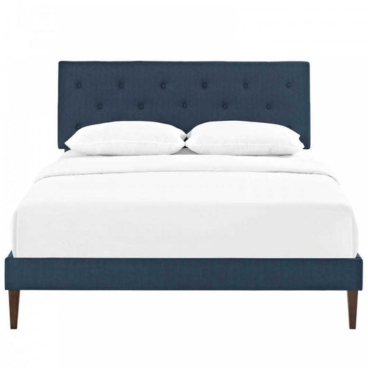 Tarah Queen Fabric Platform Bed with Squared Tapered Legs, Azure