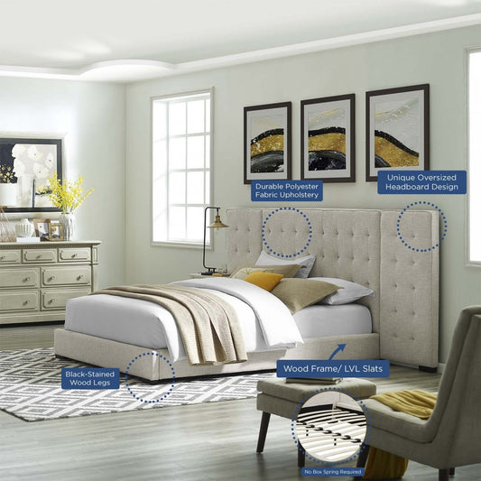 Sierra Queen Upholstered Fabric Platform Bed, Beige