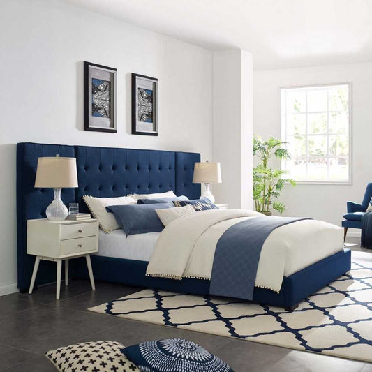 Sierra Queen Upholstered Fabric Platform Bed, Azure