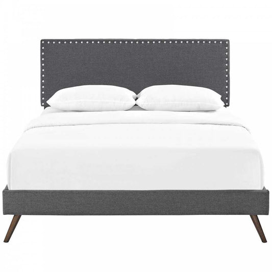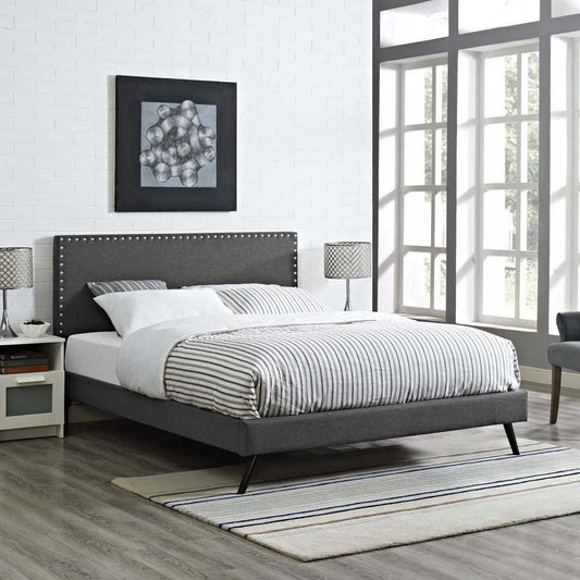 Macie Queen Fabric Platform Bed with Squared Tapered Legs, Gray