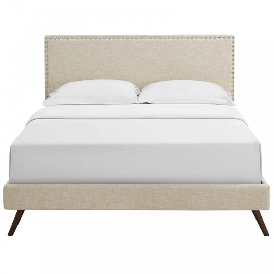 Macie Queen Fabric Platform Bed with Round Splayed Legs, Beige