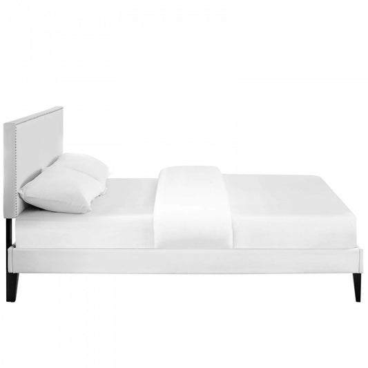 Macie King Vinyl Platform Bed with Squared Tapered Legs, White