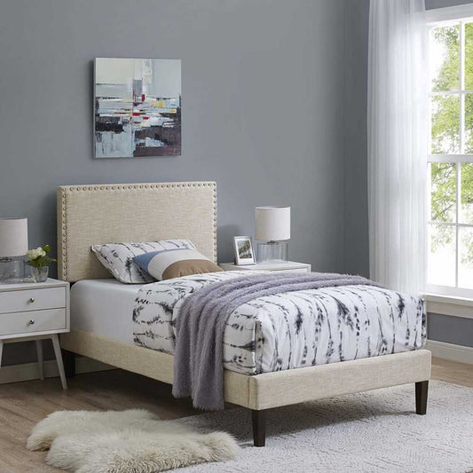 Macie Twin Fabric Platform Bed with Squared Tapered Legs, Beige
