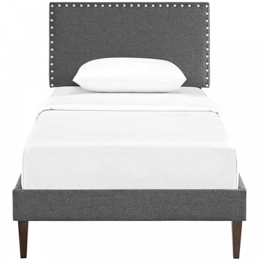 Macie Twin Fabric Platform Bed with Squared Tapered Legs, Gray