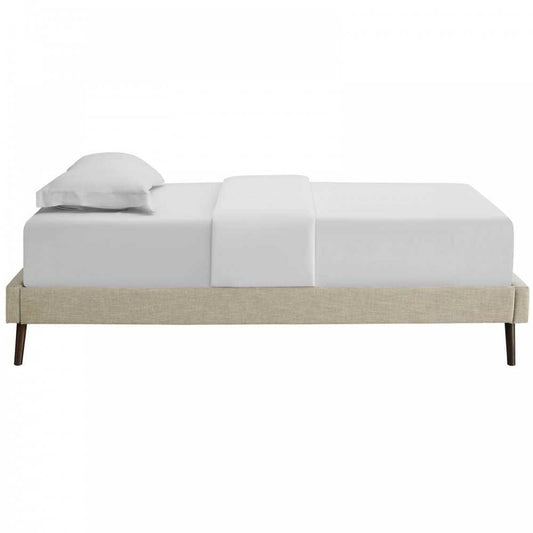 Loryn Queen Fabric Bed Frame with Round Splayed Legs, Beige