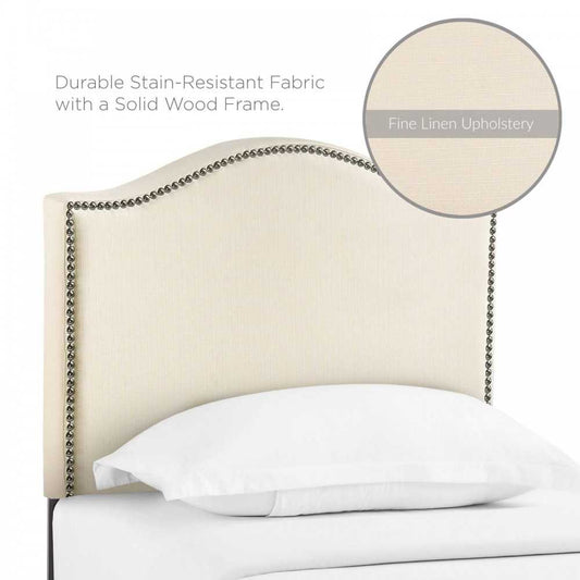 Curl Twin Nailhead Upholstered Headboard, Ivory