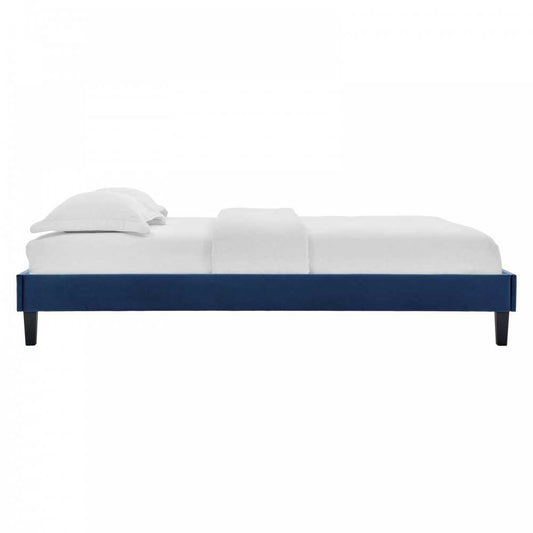 Reign Queen Performance Velvet Platform Bed Frame, Navy