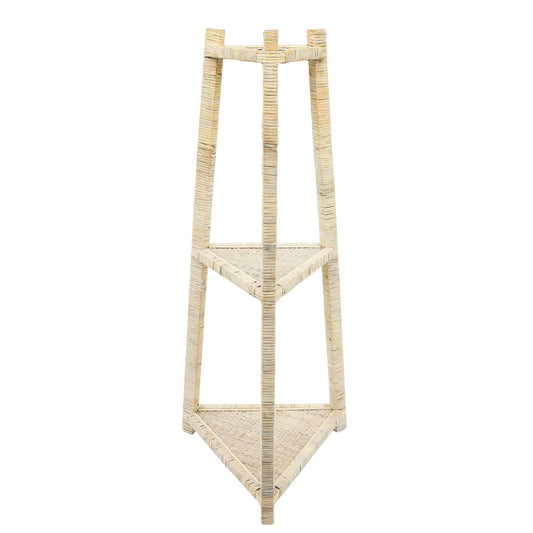 Wood/rattan 37" Corner Triangle Shelf, Brown