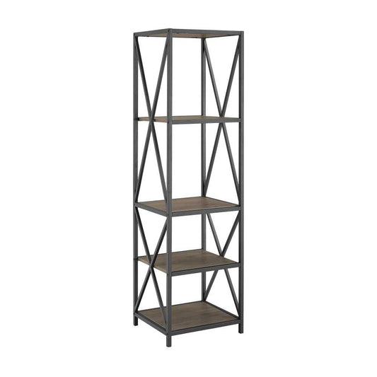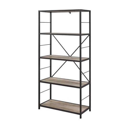 Modern Industrial Metal and Wood Bookshelf - Gray Wash