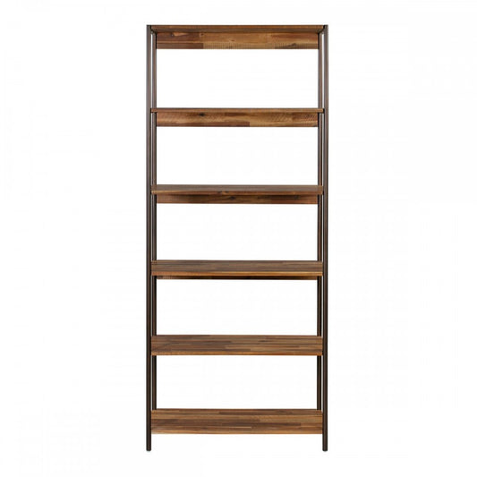 Contemporary Metal and Wood 5-Shelf Ladder Bookshelf - Rustic Oak