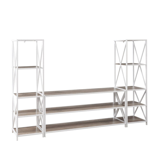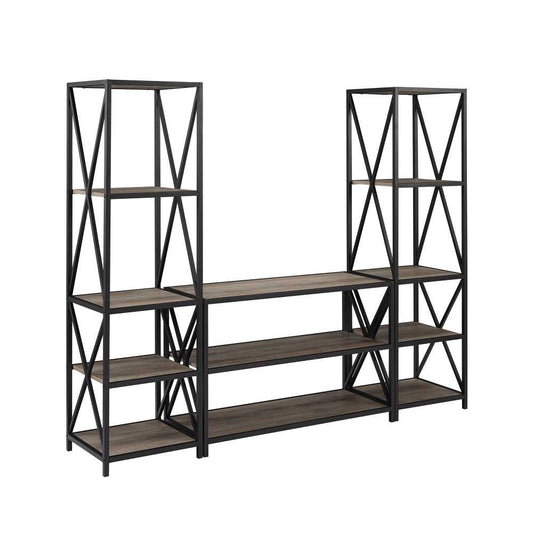 3-Piece Rustic Industrial Bookcase Set - Gray Wash