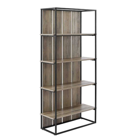 Morty 64" Metal and Wood 5 Shelf Bookshelf - Gray Wash