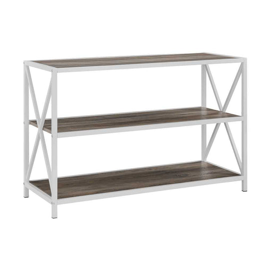 X Frame 40" Industrial Wood Bookshelf - Gray Wash/White Metal
