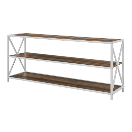 X Frame 60" Industrial Bookshelf - Rustic Oak/White Metal