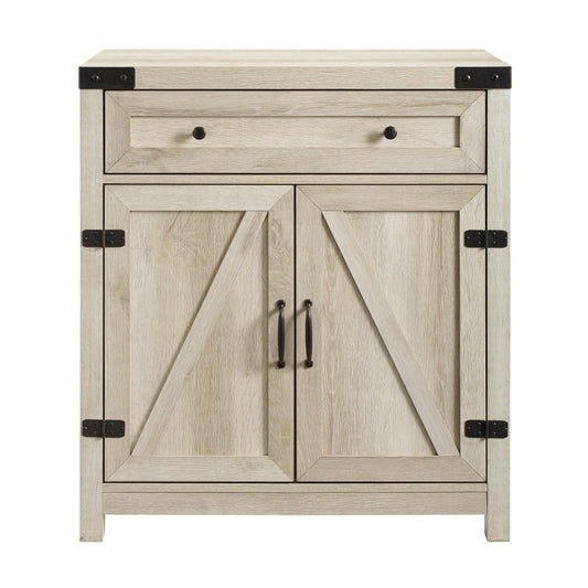 30" Farmhouse Barn Door Accent Cabinet - White Oak