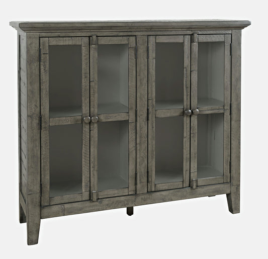 Rustic Shores 48" Coastal Distressed Acacia Four-Door Accent Cabinet - Grey Wash