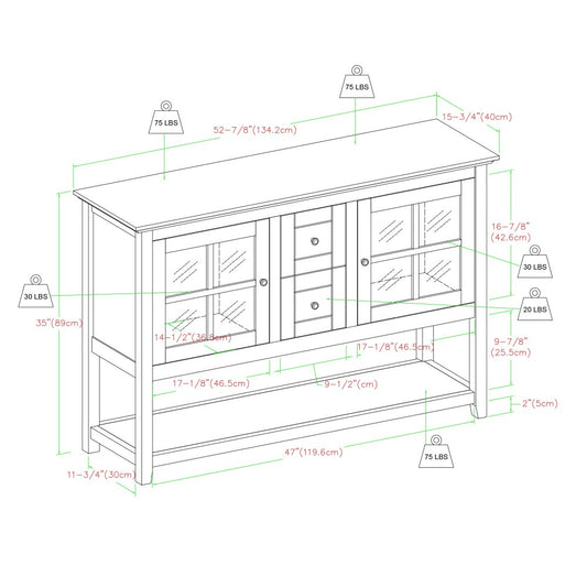 Hank 48" Solid Wood 2 Drawer Buffet with Wine Shelf - Gray