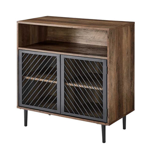 Keegan 32" Modern Slanted Metal Door Accent Cabinet - Rustic Oak