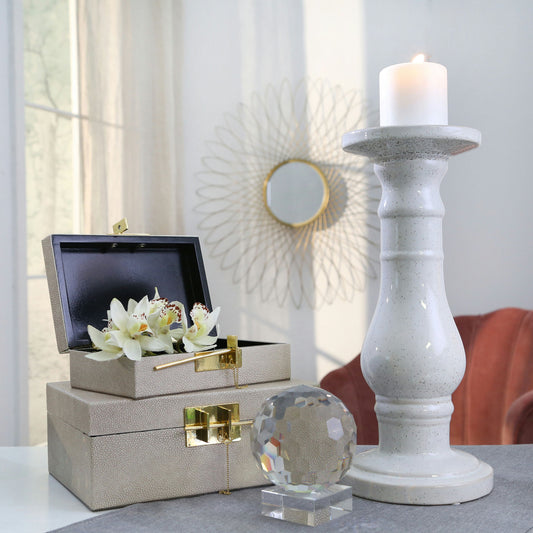 Ceramic 16" Candle Holder, Beige Fade Matt
