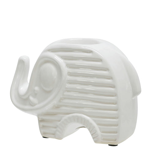Ceramic 6" Elephant Tea Light Candle Holder, White
