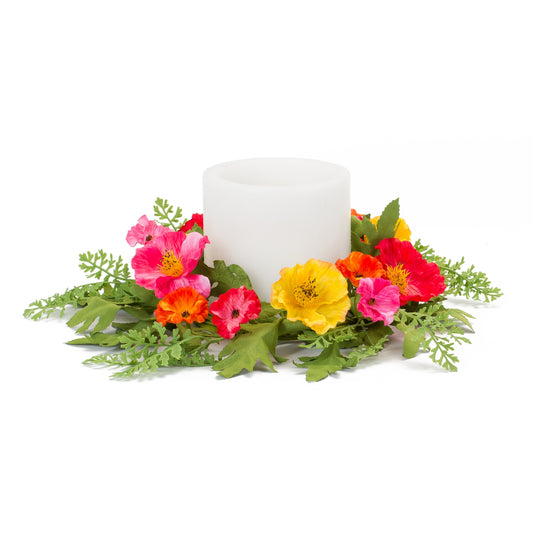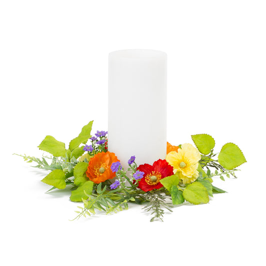 Mixed Poppy Candle Ring (Set Of 4) 19"D Polyester (Fits A 6" Candle)