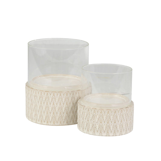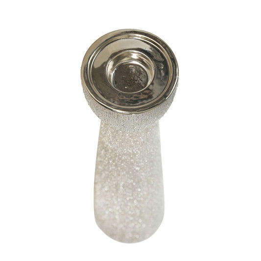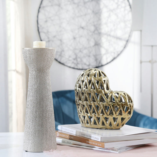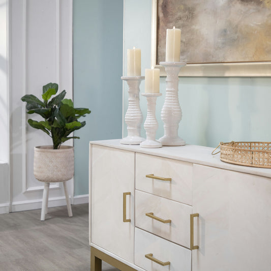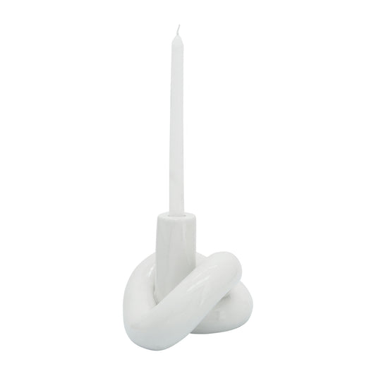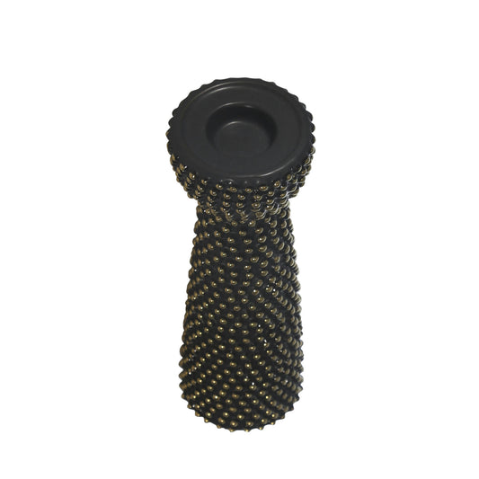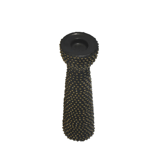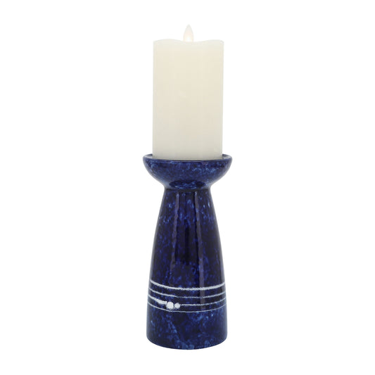 Cer,12"dotted Pillar Candle Holder,nvy Blue/cotton