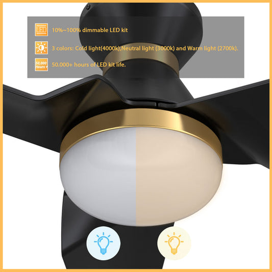 Kreis 52 Inch 3-Blade Smart Ceiling Fan - Black (Gold Detail)