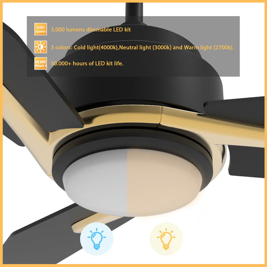Tracer 52 Inch 3-Blade Smart Ceiling Fan - Black/Black