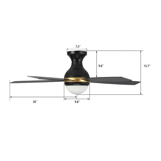 Winston 52 Inch 5-Blade Smart Ceiling Fan - Black/Black