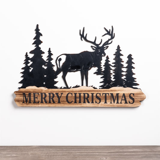 Merry Christmas Sign (Set Of 2) 18"L x 11"H Metal/Wood