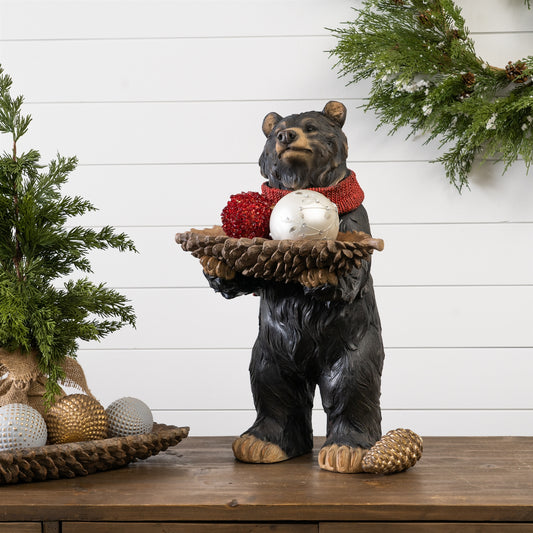 Bear W/Pine Cone Bowl 11.5"L x 21.5"H Resin