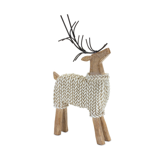 Deer W/Sweater (Set Of 2) 10.75"H, 12"H Resin/Metal, Beige, Brown