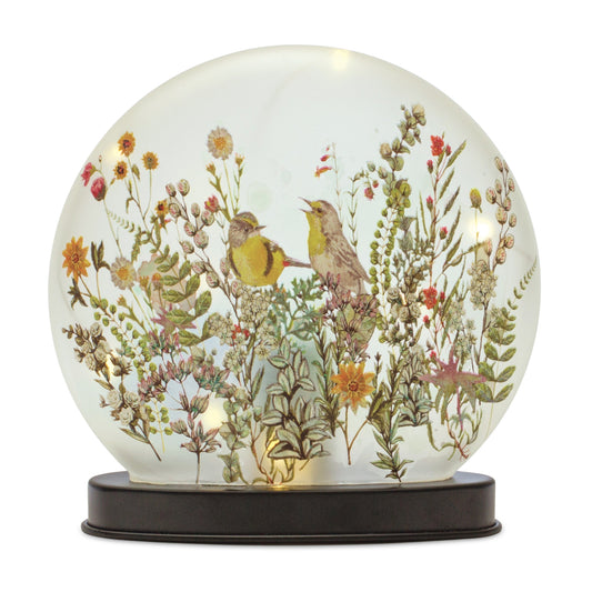 Bird And Floral Globe (Set Of 2) 8"H Glass 2Aa Batteries, Not Included