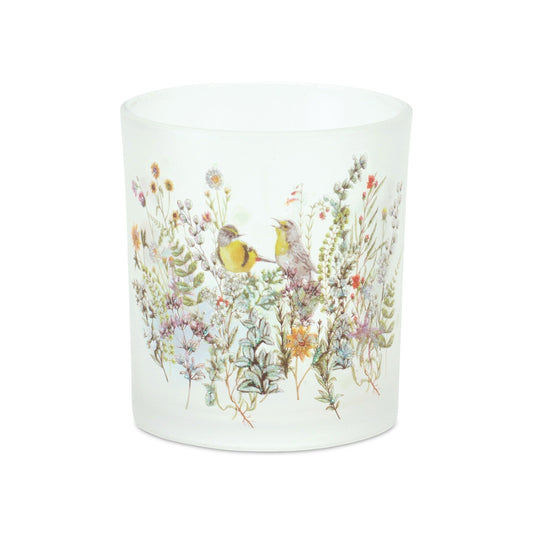 Bird And Floral Candle (Set Of 6) Holder 4"D x 8"H Glass