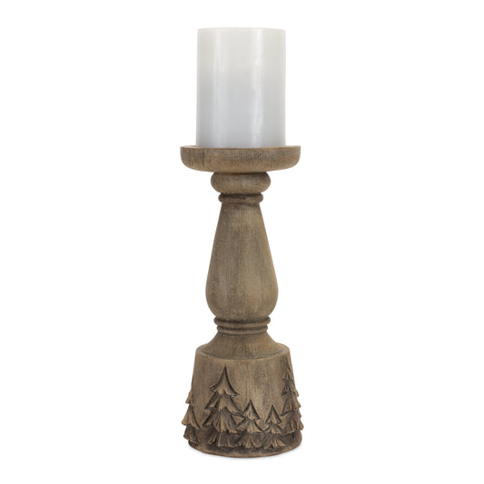 Candle Holder (Set Of 3) 7"H, 11.25"H, 13.5"H Wood/Resin, Brown, White