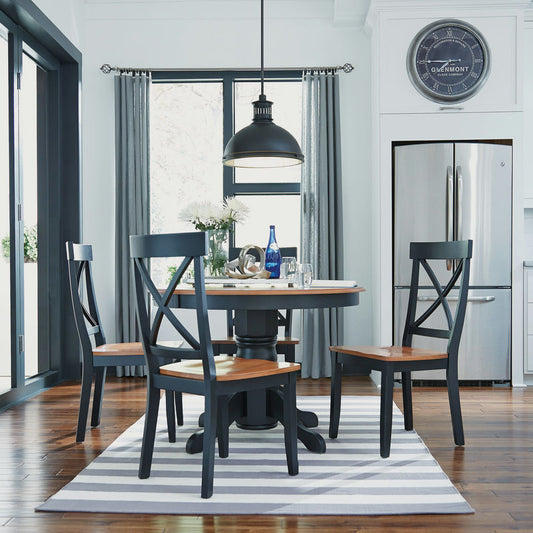 Telluride Rustic Farmhouse Five Piece Dining Table Set with Cross Back Chairs