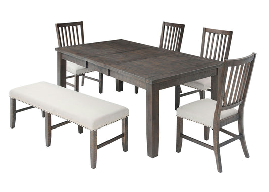 Telluride Rustic Distressed Pine 78" Six-Piece Dining Set with Bench