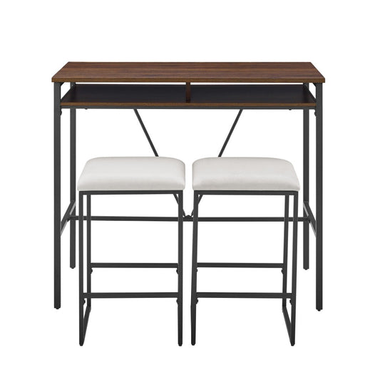 2 Tier Metal Inverted A Frame Dining Counter with Stools - Dark Walnut/Gray