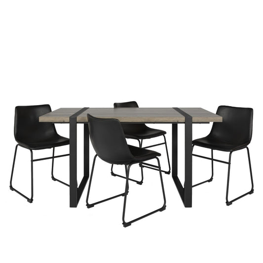5-Piece Urban Blend with Faux Leather Dining Chairs - Gray Wash/Black