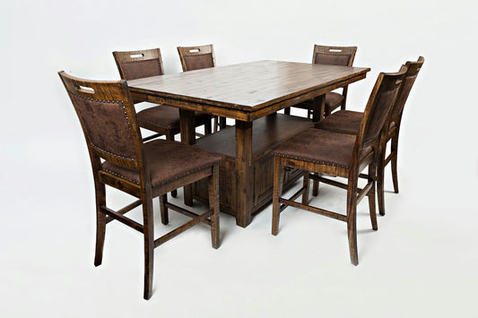 Cannon Valley Rustic Industrial Brown 72" Table + 6 Upholstered Counter Stools