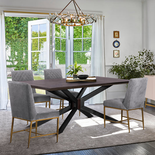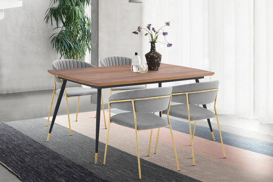 Messina and Nara Gray Velvet 5 Piece Rectangular Dining Set